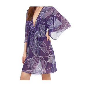 NEW Gottex Natural Essence Deep V-Neck Swimsuit Cover Up Dress Purple Size Large
