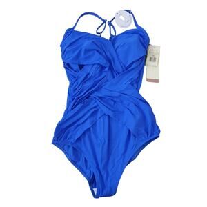 NEW Gottex One PIeces Women's Swimsuit Blue Size 14 Bathing Suit Vneck