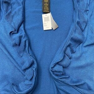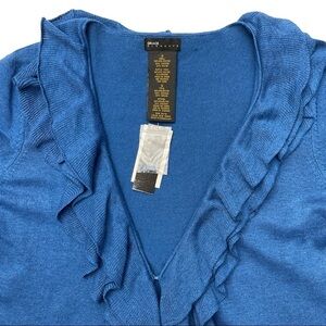 NEW Grace Elements Blue Ruffled Trim Flyaway Cozy Plush & Chic Cardigan Sweater