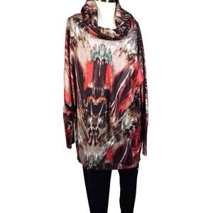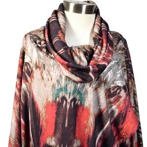 NEW Grace Elements L Wrap Top Cowl Neck Dolman Sleeves Abstract Print Oversized