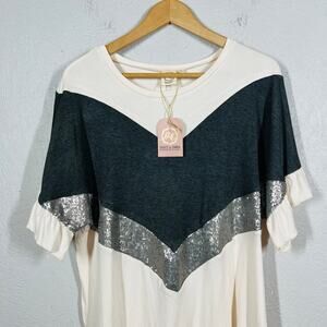 NEW! Grace & Emma Scoop Net Jersey Tunic Top Sequin Chevron Short Sleeve - L