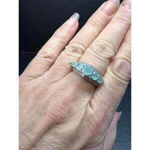 Genuine grandidierite graduated round cut gemstones prong set in authentic 925 sterling silver that’s plated with rhodium. White accent stones are zircon. Measures a size 8 and has a total weight of 5.14 grams. Total ctw is 3.65. Estimated retail value is $550.