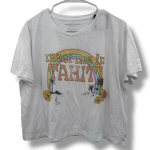 NEW Grayson Threads Crop Graphic Tee Size Large Tahiti Boho Rainbow Surfer Girl