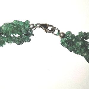 Green Aventurine Chips, 3 Strand Necklace with Platinum over Sterling Silver Clasp.
