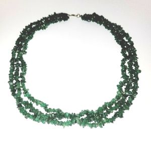 NEW Green Aventurine Chips 3 Strand Necklace Platinum over Sterling Clasp 20in
