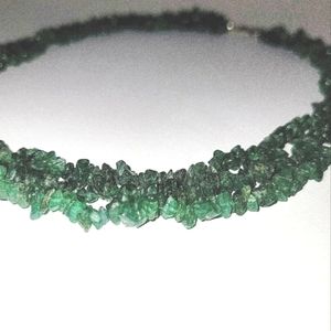 This super stylish Aventurine gemstone chips necklace is hand-set with platinum-plated sterling silver lobster claw clasp.