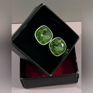 NEW Elegant green gemstone earrings with a silver setting. Perfect for any occasion. Measure approximately 1/2”. Perfect for that August birthday or anniversary.