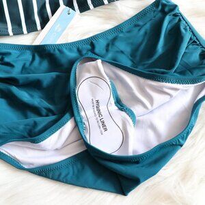 NEW Green White Stripe High Waisted Hipster Bikini Swim Set Size Small
