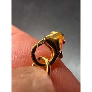 Green onyx round cut gemstone set in 925 sterling silver plated with 18k yellow gold. Chain measures 16-18 inches with extension. Lobster clasp. Stamps 925 VS India.