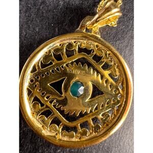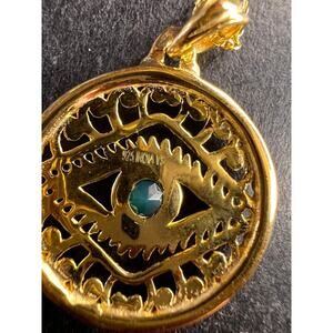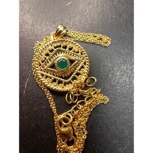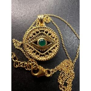 NEW Green onyx evil eye pendant and chain in gold over sterling silver
