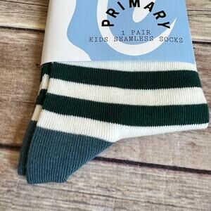 Size 4-6 Primary dark green and white striped kids seamless cotton socks. Super soft! No flaws. New in package, only taken out for photos to see close up.