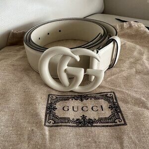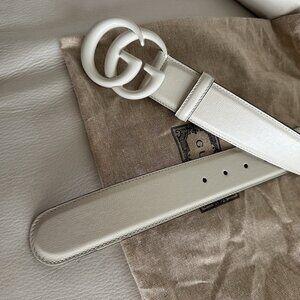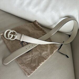 NEW Gucci Azalea Belt White Double G Monogram Calfskin Sz 110 Cm 44 In