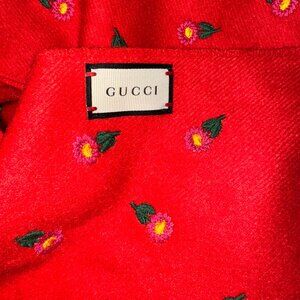 NEW Gucci Daisies Silk Cashmere Blend Soft Scarf - Red