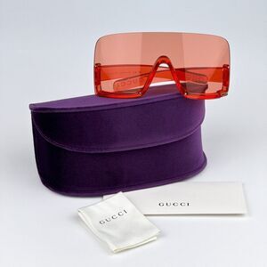 NEW Gucci GG1631S 001 Transparent Red Light Red Shield Unisex Sunglasses