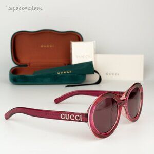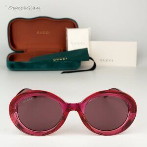 NEW Gucci GG1722SA 004 Transparent Red Burgundy Violet Unisex Oval Sunglases