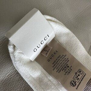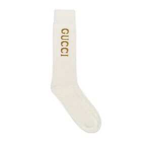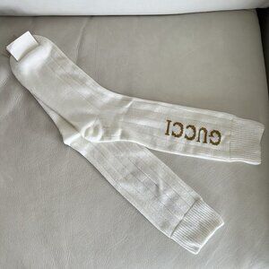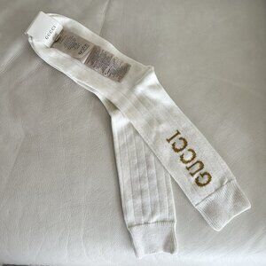 NEW Gucci Logo Socks Unisex White Wool 100% Authentic Gold Size S