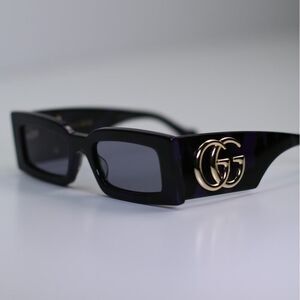 The Gucci GG1425S 003 sunglasses are a bold and fashionable accessory designed for women. These sunglasses feature a rectangular shape crafted from high-quality acetate, offering both durability and a striking aesthetic.