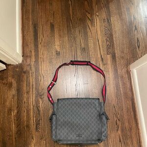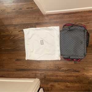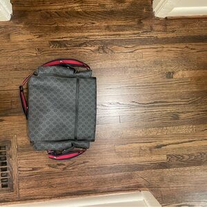 NEVER USED - Gucci diaper bag. Navy with red accents on the strap. Dust bag included.
