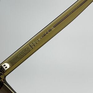 The temples are adorned with the Gucci lettering logo, enhancing the luxurious appeal of these sunglasses. The combination of the transparent yellow frame and brown lenses offers a unique yet classic look, suitable for various face shapes.