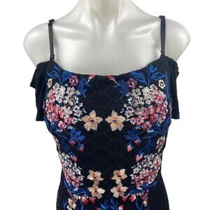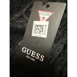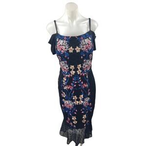 NEW Guess Black Floral Off The Shoulder Lace Ruffle Midi Bodycon Dress Size 14
