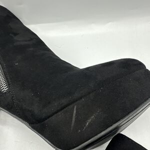 The NEW Guess Dejah3 Stiletto Heel Boot in Black Fabric is a stylish and elegant choice for women in size 7 1/2. With its stiletto heel and fabric outsole, this boot offers both fashion and comfort. The black faux suede upper material adds a touch of sophistication to the bootie style, making it a versatile option for any outfit. The Guess brand ensures quality and the model, Dejah3, is a trendy addition to any shoe collection.