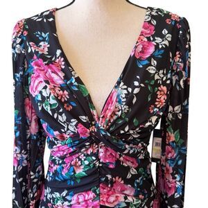 NEW Guess Long Sleeve Floral Ruched Mermaid Style Midi Dress Sz4 Party, Wedding