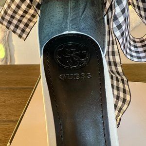 NEW Guess Pump Allison's Women White Leather Checkered Ribbon