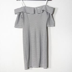 Guess women’s off-shoulder dress in a clean monochrome stripe with a soft stretch knit that hugs just right. Women’s size medium. The fitted bodycon cut and delicate shoulder detail give it that playful prep feel, while the crisp stripes nail the minimal coastal vibe. Lightweight but structured enough to keep its shape, this piece is easy to dress up or down for any breezy day out.