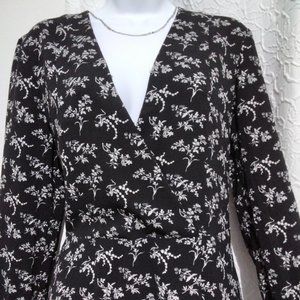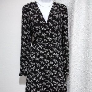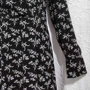 NEW H & M Women Dress Black Floral Pattern Long Sleeve Size 2 Soft Flare Relax