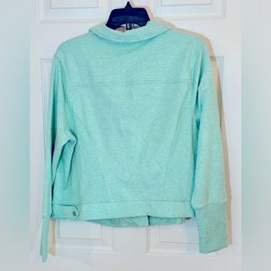 French terry fabric provides the softness you want, while a fitted cut and ribbed details gives you the look that hugs your curves in all the right places. Asymmetrical zipper, large fold over lapels, beautiful silver metal buttons and large zipper pull. Material is soft and luxurious! This piece is new without tags from a smoke free home. Originally $97. Plus size 20W, PTP closed is 23” (garment does stretch beyond that) and length at center is 23”. Bundle & Save with many other great finds by visiting my closet @youfoundcoco.