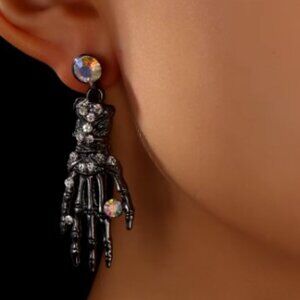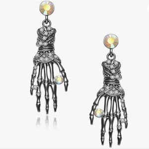 NEW SKELETON HANDS GOTH EARRINGS BLACK Crystal
