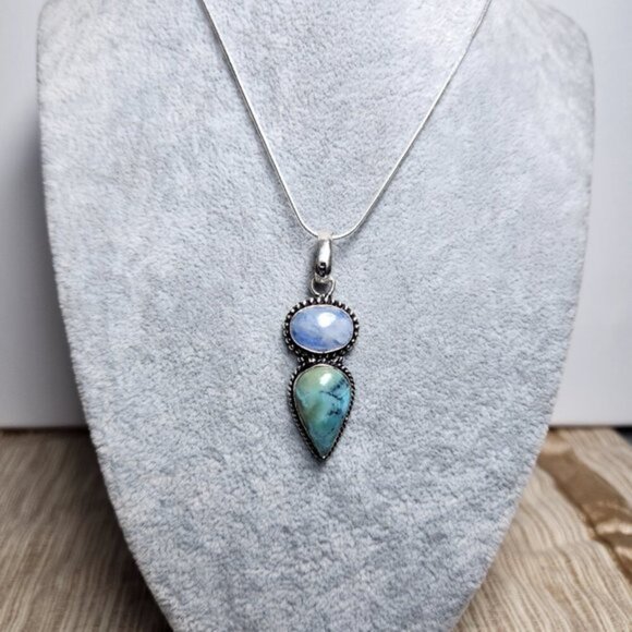 NEW HAND CRAFTED Natural Moonstone & Larimar 925 Hallmark Pendant