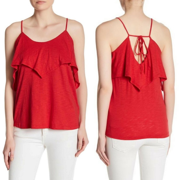 NEW HARLOWE & GRAHAM RED Ruffled Cami Top Popover Strappy Size Medium NWT