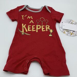 NEW~ HARRY POTTER Baby Rompers 2-Pack 0-3M I'm A Keeper Gryffindor Shortall