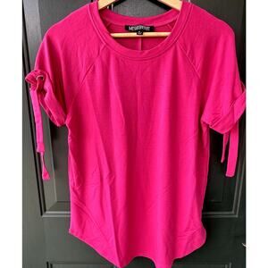 NEW HFR x Megan Renee HSN Soft Touch Magic Jersey Tie Sleeve Top in Fuchsia Sz M