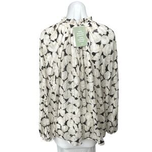 NEW H&M Beige Black Sea Shells Long Sleeve Mock Ruffle Keyhole Blouse Top Size M