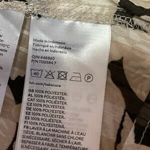 H&M Beige Black Sea Shells Long Sleeve Mock Ruffle Keyhole Blouse Top Size M