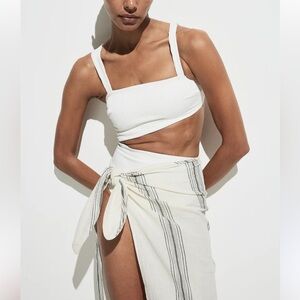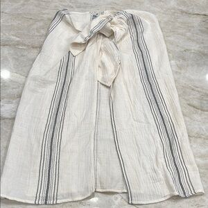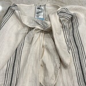 H&M Cotton Wrapover Sarong – Size M/L. Classic cream with black stripes, 100% cotton, and knee-length. Features wide side ties for a customizable fit. New with tags – never worn. Perfect as a swimsuit cover-up or styled with a tank for a breezy summer look. Great for beach, resort, or vacation wear. See photos for measurements.