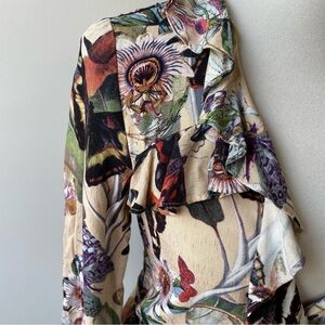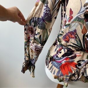 NEW H&M Frilled Ruffle Trim Wrap Tropical Floral Blouse! Size 2