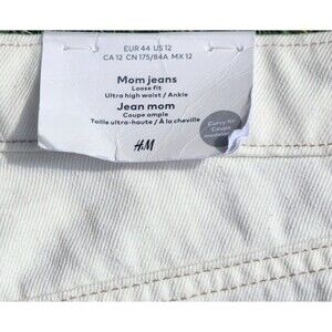 NEW H&M Mom Jeans Women's Size 12 White Curvy Fit High Waist Loose NWT 90s