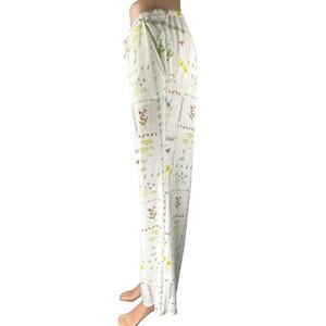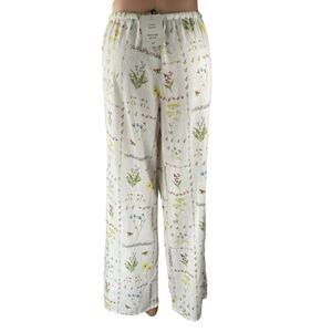 NEW H&M White Floral Linen Drawstring Baggy Wide Leg Trousers Pants Size L