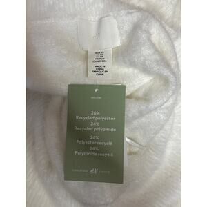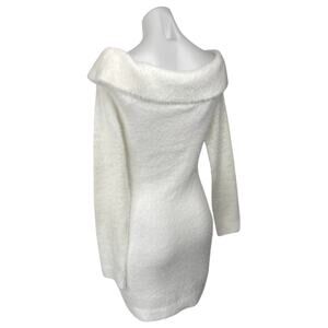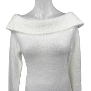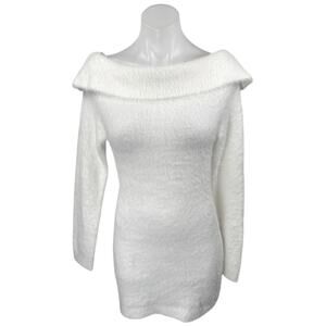 NEW H&M White Off The Shoulder Fluffy Knit Long Sleeve Mini Sweater Dress XS