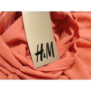 NEW H&M Womens Dress Size 8 Coral Crossover Back Tier Ruching Zip-up Back V-Neck