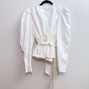 NEW H&M Women’s Large White Poplin Cotton Wrap Waist Belt Tie Blouse Top