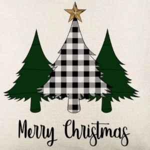 NEW HOLIDAYS MERRY CHRISTMAS BUFFALO CHECK TREES STAR LINEN PILLOW COVER 17.7"