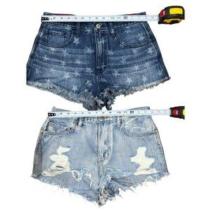 NEW HOLLISTER 2 Pairs Womens Sz 7 High Rise Denim Shorts Distressed Frayed Hem