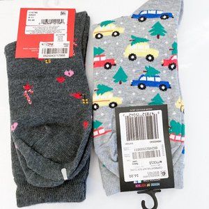 NEW HOT SOX Bundle 2 Pair Holiday Christmas Socks Trees on Cars Santa Claus