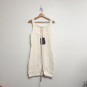 NEW HOUSE OF CB Zaira Cream Chenille Knit Mini Dress Sweater White Large