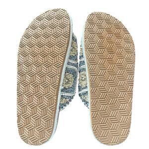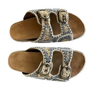 NEW HOUSE OF HARLOW 1960 Women's Size 8.5 Beaded Buckle Flat Slides Boho Sandals