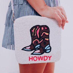 NEW HOWDY Cowboy Boots Country Western Beaded Crossbody Box Bag Handbag & Strap